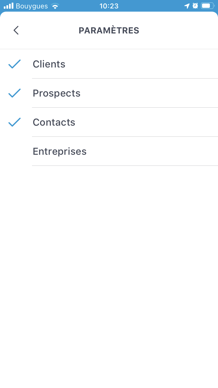La version mobile de MobiCRM propose dans l'onglet suggestions une carte affichant, les client, les prospects et les contacts dans les alentours.