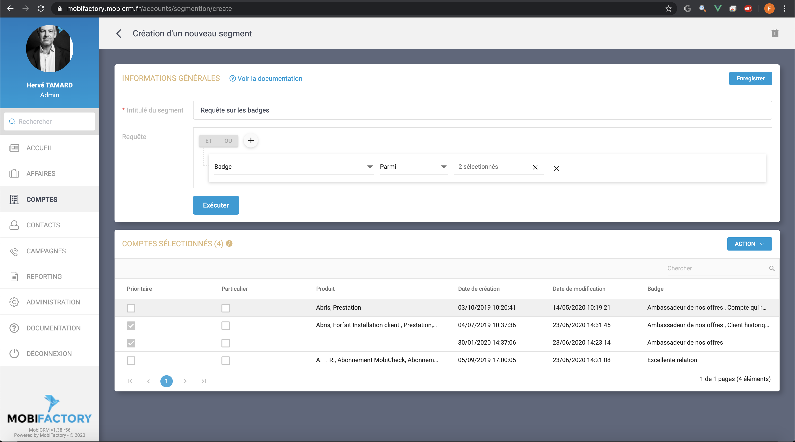 Une nouvelle colonne 'Badge' sera affiché dans les résultats, contenant les badges du compte.