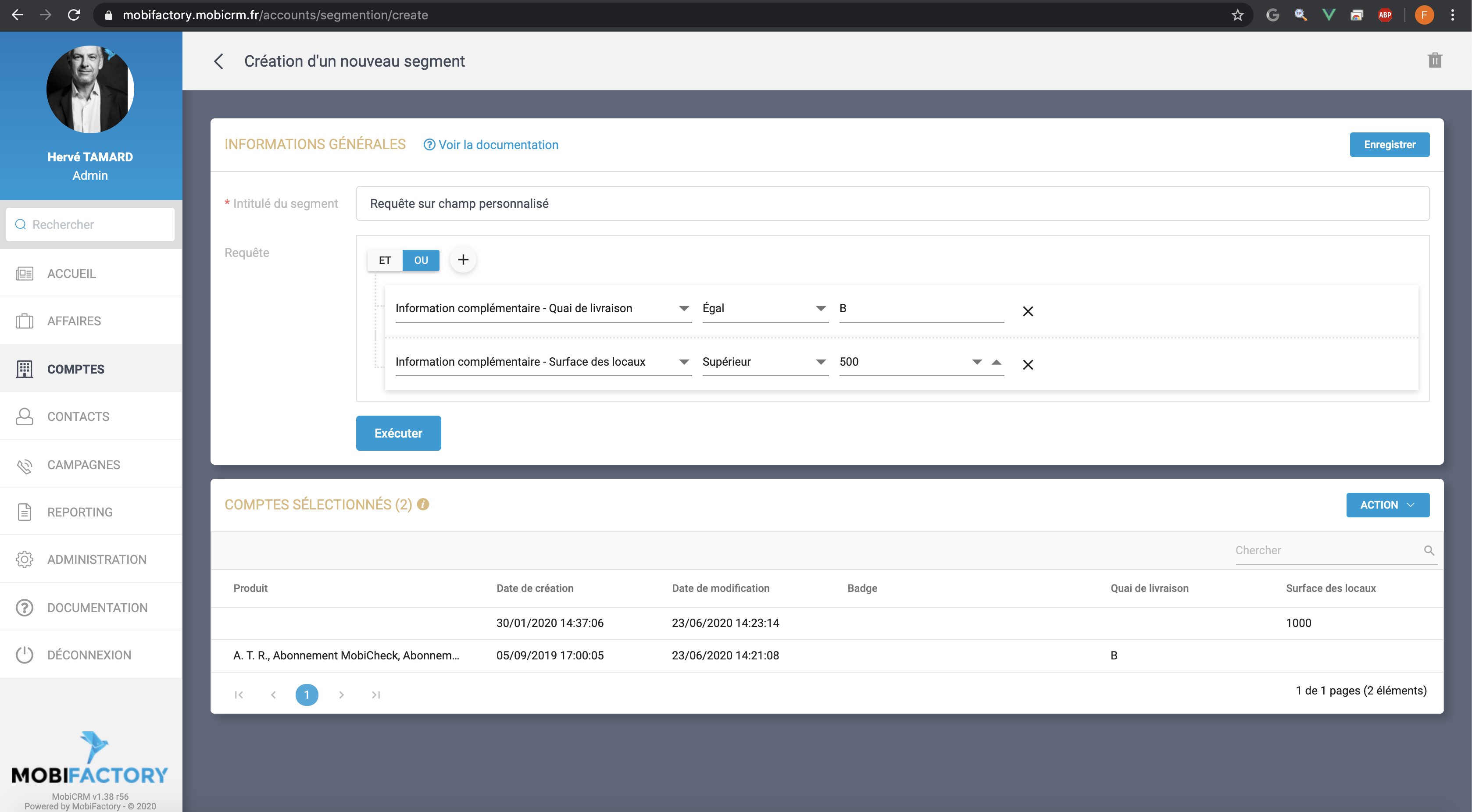 - Les requêtes se font sur les informations des comptes (ville, secteur, type de compte....) ainsi que sur vos données de référence (secteur géographique, potentiel ...) via des critères de sélection (égal, différent de, commence par, parmi...).
