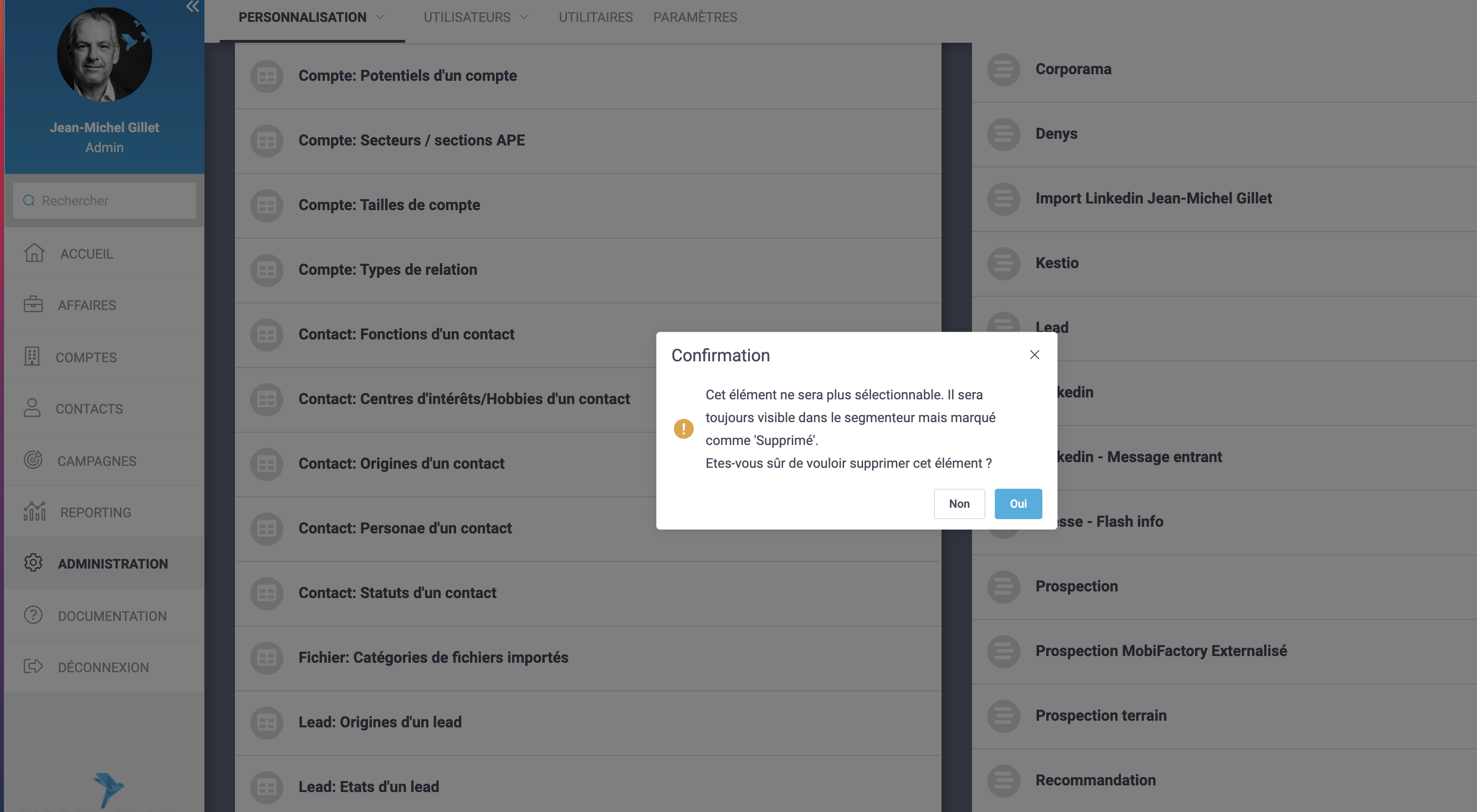 Vous pouvez maintenant supprimer des données de référence ainsi que des produits, même si ils sont liés à un compte, un contact ou une affaire.