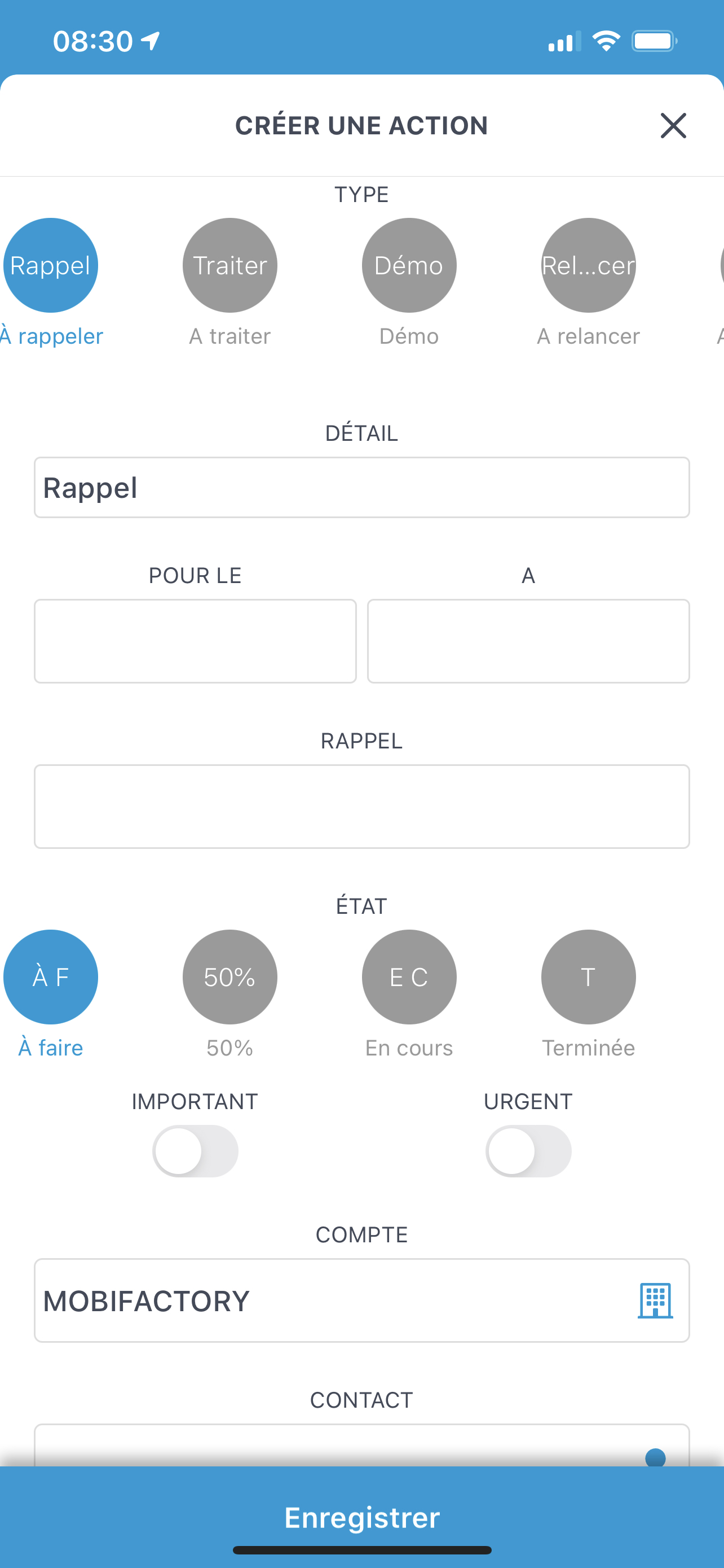 Afin d’améliorer encore la vitesse de saisie des informations, nous avons mis un nouveau bouton Enregistrer en bas de tous les écrans de saisie. Ce bouton est fixe, vous pouvez désormais enregistrer sans avoir à scroller l’écran.