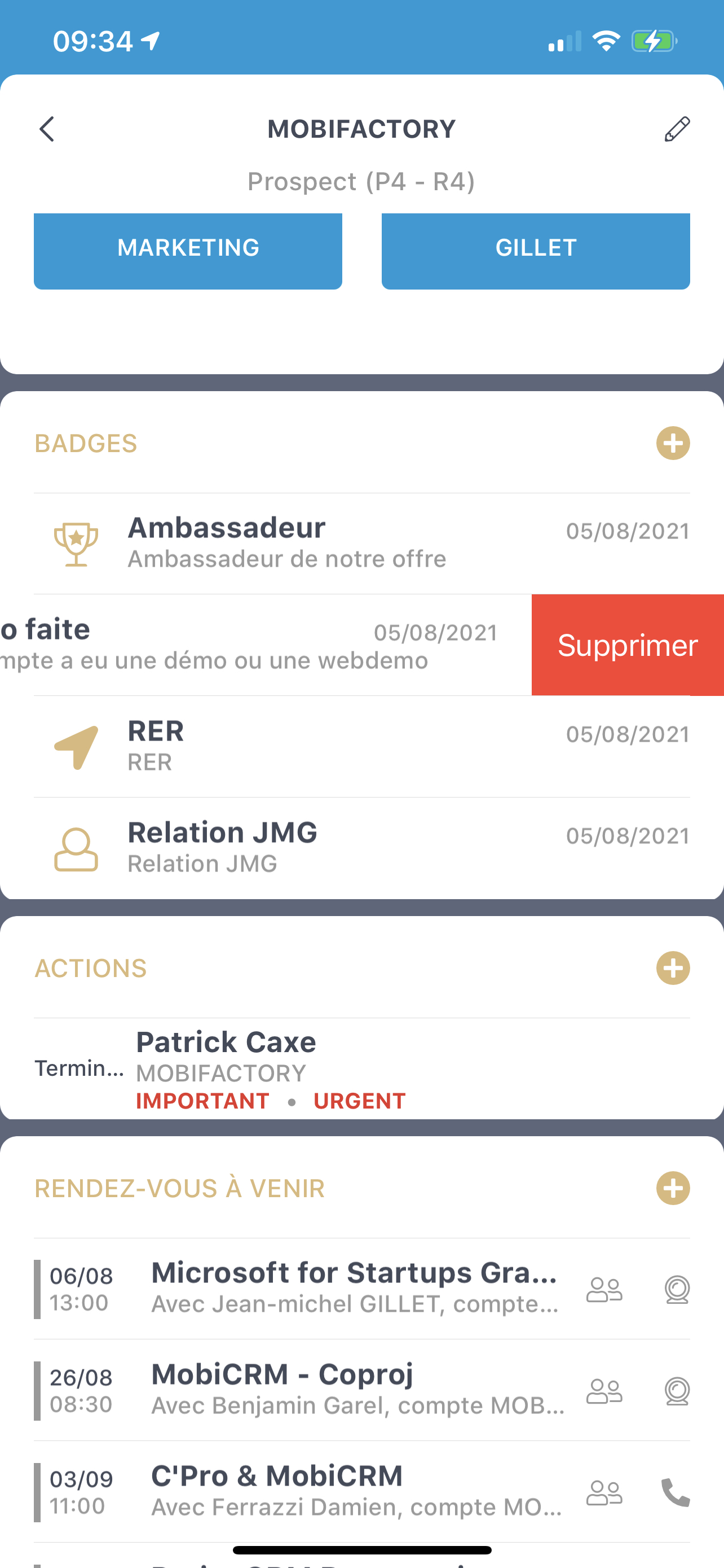 Idem, afin d’améliorer encore la facilité de suppression des informations inutiles, nous avons généralisé la suppression par slider. (slide de droite à gauche sur la ligne à supprimer). Un message vous demande la confirmation avant suppression pour éviter toute erreur.